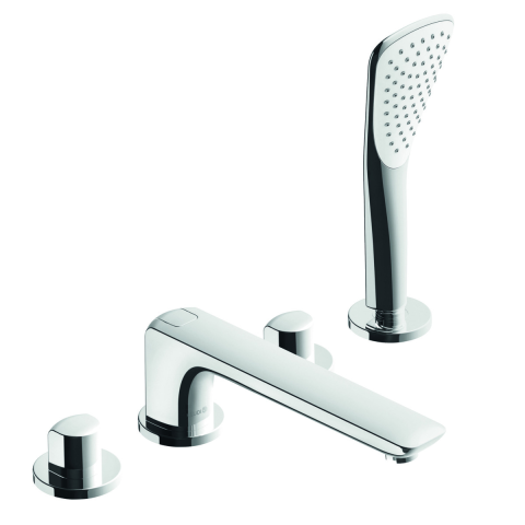 Csz: 414240530 KLUDI AMEO Egykaros kádtöltő és zuhanycsap Négylyukas szerelésű, alsóhidas kivitel Álló szerelési mód Teli fogantyú Kerámia felsőrész 90° Automatikus kád/zuhany váltó Visszafolyásgátlóval Süllyeszett kézizuhannyal Bekötőcső G 1/2 x G 1/