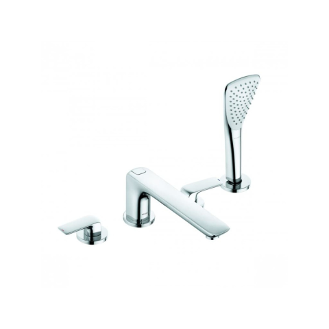 Csz: 414240575 KLUDI AMEO Egykaros kádtöltő és zuhanycsap Négylyukas szerelésű, alsóhidas kivitel Álló szerelési mód Teli fogantyú Kerámia felsőrész 90° Automatikus kád/zuhany váltó Visszafolyásgátlóval Süllyeszett kézizuhannyal Bekötőcső G 1/2 x G 1/