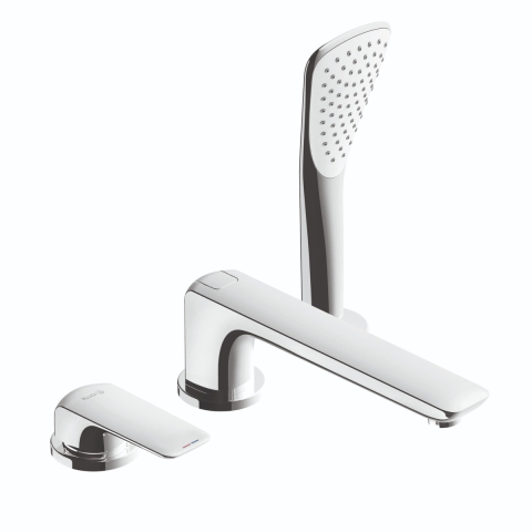 Csz: 414470575 KLUDI AMEO Egykaros kádtöltő és zuhanycsap Álló szerelési mód Teli fogantyú Háromlyukas szerelésű, alsóhidas kivitel Kerámia kartus hőfokkorlátozóval Automatikus kád/zuhany váltó Visszafolyásgátlóval Süllyeszett kézizuhannyal 7480200-00