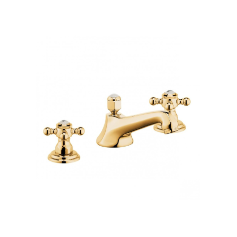 Csz: 510460520 KLUDI ADLON mosdócsap NA 15 keresztfogantyúk háromlyukas szerelés névleges vízmennyiség: (A osztály) kaszkád perlátor M 24 x 1 kerámia felsőrész 180° bekötőcső G 1/2 x G 1/2 x 300 mm lefolyó garnitúra G 1 1/4 kar benyúlása: 145 mm