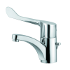 Csz: 341150524 KLUDI MEDI CARE mosdócsap orvosi emelőkar egylyukas szerelési mód névleges vízmennyiség: 8 l/perc, 3 bar nyomáson 'Care' sugárszabályozó M 24 x 1 biztonsági, kerámia kartus hőfokkorlátozóval lefolyógarnitúra G 1 1/4 gyors rögzítő rendsz