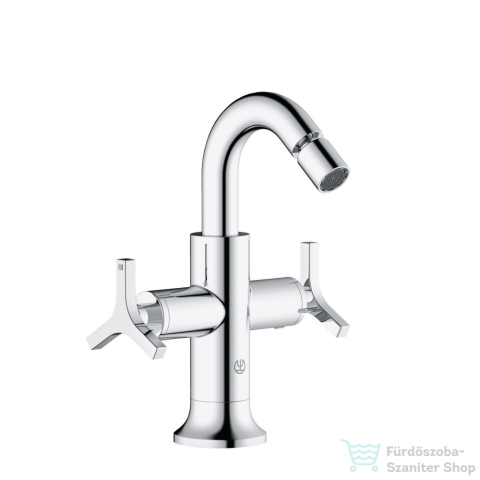 Csz: 203130539 KLUDI NOVA FONTE Déco bidécsap egylyukas szerelési mód Csillagfogantyúk, fém kerámia felsőrész 90° Soft-Start perlátor M 18,5 x 1 PCA lamináris gömbcsuklós fejzuhany névleges vízmennyiség: (Z osztály) lefolyógarnitúra G 1 1/4 fémből flex