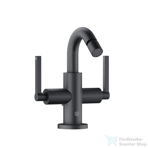 Csz: 203133915 KLUDI NOVA FONTE Puristic bidécsap egylyukas szerelési mód szárnyfogantyúk kerámia felsőrész 90° Soft-Start perlátor M 18,5 x 1 PCA lamináris gömbcsuklós fejzuhany névleges vízmennyiség: (Z osztály) lefolyógarnitúra G 1 1/4 fémből fl