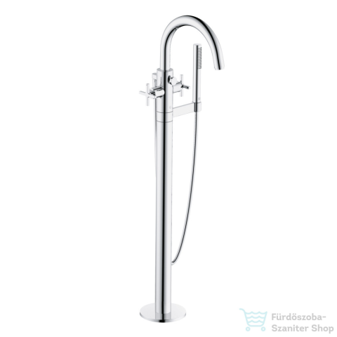 Csz: 205900520 KLUDI NOVA FONTE Classic kádtöltő- és zuhanycsap álló szerelés szabadon álló kádakhoz Keresztfogantyúk, fém kerámia felsőrész 90° Soft-Start s-pointer perlátor M 24 x 1 névleges vízmennyiség: 27 l/perc, 3 bar nyomáson automatikus kád/zuh