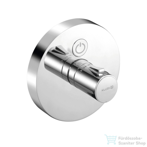KLUDI PUSH falsík alatti termosztát falon kívüli készlet szabályzóegységgel, előlappal nyomógombos vezérlés egy vízvételi lehetőséggel 38 ˚C−ra beállított retesszel kerek rozetta szükséges tartozék: 88011 KLUDI FLEXX.BOXX falsík alatti egység Kludi Pus