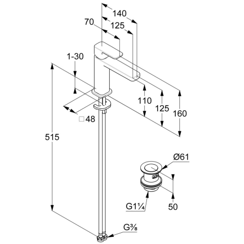 egylyukas szerelési mód teli fogantyú PCA Caché perlátor M 18,5 kerámia vezérlőegység állítható hőfokkorlátozóval EcoPlus hideg víz középállásnál névleges vízmennyiség: 5 l/perc, 3 bar nyomáson rugalmas nyomótömlők G 3/8 DVGW jóváhagyással gyors rögzítő r
