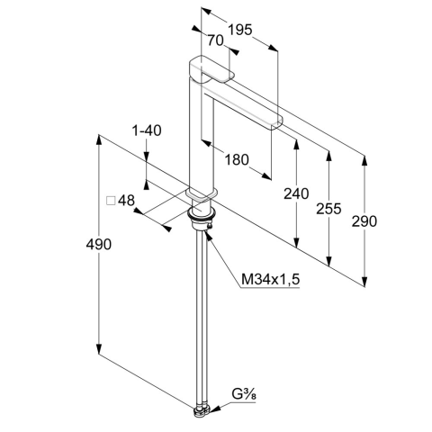 egylyukas szerelési mód teli fogantyú PCA Caché perlátor M 18,5 kerámia vezérlőegység állítható hőfokkorlátozóval névleges vízmennyiség: 5 l/perc, 3 bar nyomáson rugalmas nyomótömlők G 3/8 DVGW jóváhagyással gyors rögzítő rendszer lefolyógarnitúra nélkül