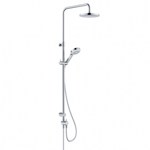KLUDI DIVE DUAL SHOWER SYSTEM falra szerelhető kivitel függőlegesen és vízszintesen állítható felszállócső a csúszka pozíciója függőlegesen állítható 90°-os elfordítású, kerámia-vezérlőegységgel zuhany csatlakozás alul G 1/2 kézizuhany: szelep hátra fordí