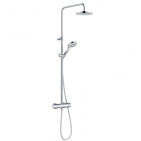 KLUDI DIVE THERMOSTAT DUAL SHOWER SYSTEM falra szerelhető kivitel függőlegesen és vízszintesen állítható felszállócső a csúszka pozíciója függőlegesen állítható hőfokszabályzó kar 38°C-ra beállított reteszgombbal 90°-os elfordítású, kerámia-vezérlőegységg