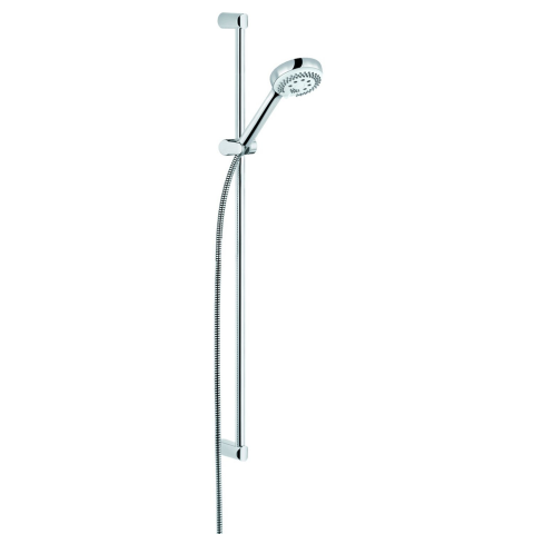 90 cm hosszú és 23 mm átmérőjű falirúd, Kludi Logo 3S kézizuhany, átfolyási adatok: 13 l/min (masszázs) / 10 l/min (lágy) / 15 l/min (permet) 3 bar nyomáson Kludi LogoFlex gégecsővel G 1/2 x G 1/2 x 1600 mm, műanyag borítással, kúpos anyával, fém hatású megjelenés, G 1/2 x G 1/2 x 1600 mm.
