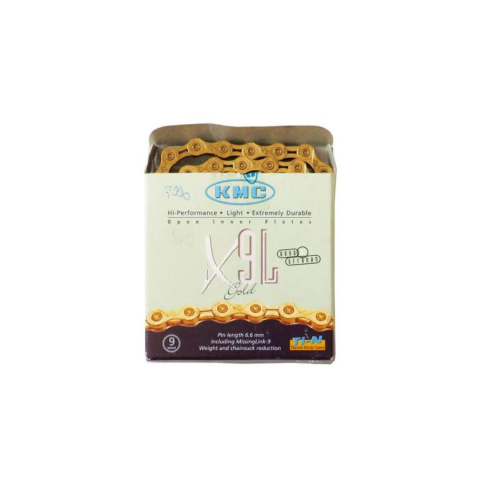 KMC X9 SL kerékpár lánc, 9s, 116 szem, könnyített, patentszemmel, arany színű
