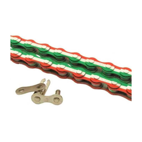 110 tagú, 1/8-os szélességű egysebességes színes lánc, pálya gépekhez, Dirt bicajokhoz, BMX-ekhez, és mindenféle Single Speed felhasználásra.