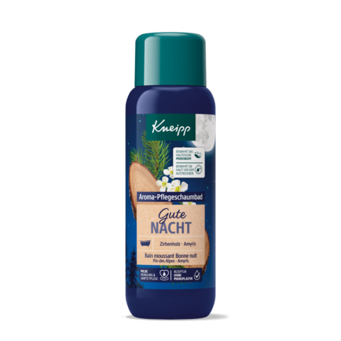 Élvezze az esti fürdési rituálét és készüljön fel a pihentető alvásra a Kneipp Jó éjszakát aromahabfürdővel. A kőfenyő és amyris illóolajait tartalmazó fürdő, a nyugtató, meleg, fás illata és a mélykék víz megnyugtatja gondolatait, így jobban alszik és másnap reggel kipihenten ébredhet. A természetes táplálóolajjal a fürdő megőrzi a bőr nedvességtartalmát. Jó éjszakát - jobb reggelt!