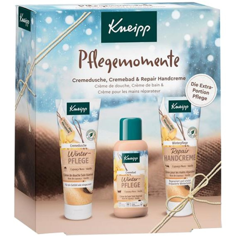 Kozmetikai ajándékcsomag - tartalma: zuhanyzselé 75 ml, fürdőhab 75 ml, kézkrém 75 ml A Kneipp Téli ápolás ajándékcsomagja tusfürdőt, fürdőhabot és kézkrémet tartalmaz limitált kiadásban. Gyönyörű ajándék lesz nemcsak szeretteidnek. Ezt a kényeztető csomagot akár saját magadnak is adha