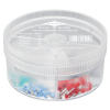 Praktikus szóródoboz, rakatolható és visszazárható Kézreálló, átlátható szóródoboz Elforgatható fedél nyílással az egyes érvéghüvelyek kivételéhez Szigetelt érvéghüvelyekkel, DIN szerinti színkódolással Formátum: Ø 90 mm, magasság 44 mm KNIPEX