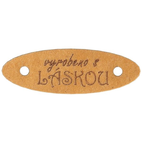 Felvarró - felvarrható, ovális alakú, motívum felirattal, barna színben, anyaga mosható papír, mérete 13 × 40 mm (H×Sz), 6 darabos csomag