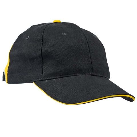 Férfi 6 paneles baseball sapka fésült pamutból Anyag:100% fésült pamut Anyagvastagság: 180 g/m2 Kontrasztos fényvisszavető szegéllyel Fém csatokkal állítható A Knoxfield kollekcióhoz illeszkedő szín kombinációban Szín: fekete-sárga