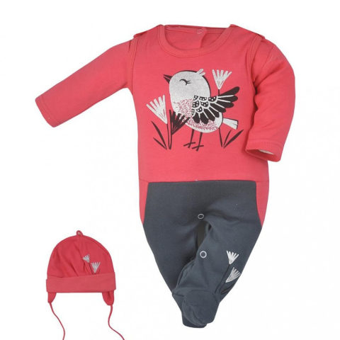 KOALA 3-részes pamut együttes Koala Birdy sötét rózsaszín babaruha szett 1 kép