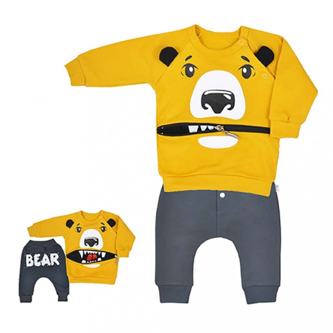 KOALA Baba melegítő nadrág és pulóver Koala Surprise mustárszín babaruha szett 1 kép