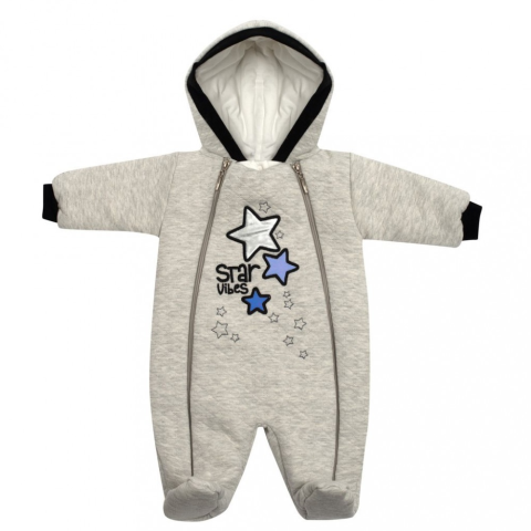 Eredeti és stílusos baba téli kezeslábas kapucnival Koala Star Vibes, kisbabák számára. Teljes hosszában a két oldalán cipzáros, ami megkönnyíti a baba öltöztetését és pelenkázását. Nagyon kellemes és puha anyagból készült, amelyben a baba nagyon kényelme