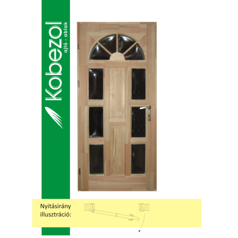 Roxane napsugár pallótokos, bejárati ajtó, szélén üvegezett. Mérete: 100cmx210cm, anyaga: borovi fenyő. Nyílásiránya: bal (nyilásirány meghatározása: jobbos, balos ajtó/ablak: szembe kell állnunk az ajtóval/ablakkal, úgy hogy felénk nyíljon. Amelyik kezünk felé esnek az ajtó/ablak pántjai (zsanérjai), olyan nyitásirányú az ajtó/ablak). A zárbetét és a kulcs tartozék, 5 ponton záródó ajtózár, kilinccsel.