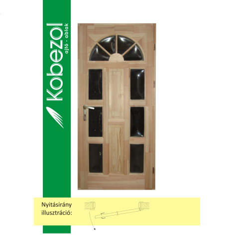 Roxane napsugár pallótokos, bejárati ajtó, szélén üvegezett. Mérete: 100cmx210cm, anyaga: borovi fenyő. Nyílásiránya: jobb (nyilásirány meghatározása: jobbos, balos ajtó/ablak: szembe kell állnunk az ajtóval/ablakkal, úgy hogy felénk nyíljon. Amelyik kezünk felé esnek az ajtó/ablak pántjai (zsanérjai), olyan nyitásirányú az ajtó/ablak). A zárbetét és a kulcs tartozék, 5 ponton záródó ajtózár, kilinccsel.