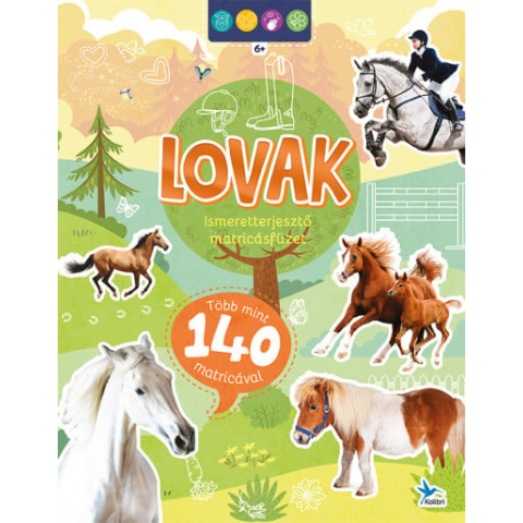 Üdvözlünk a lovak csodálatos világában! Tudd meg hogyan élnek, olvass róluk néhány izgalmas tényt, és egészítsd ki a képeket a matricáiddal!Ez az ismeretterjesztő matricásfüzet az érdeklődő apróságoknak szól. A gyerekek megismerkedhetnek a lovakkal, és sok érdekességet megtanulhatnak. A matricák beragasztásával mind a logikus gondolkodásuk, mind a szem-kéz koordinációjuk, mind a finommotorikus mozgásuk fejlődik. A könyv végén található, játékos kvízze