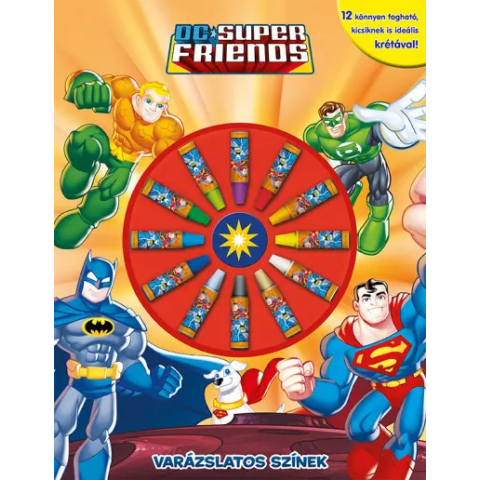 Színezőkönyv 12 darab könnyen fogható, kicsiknek ideális zsírkrétával. Használd a képzeleted, és adj színt a DC-univerzum szuperhőseinek úgy, ahogyan te szeretnéd!