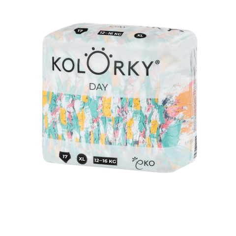 1 kép Kolorky Day öko pelenka, ecsetvonások, XL (12-16kg), 17db