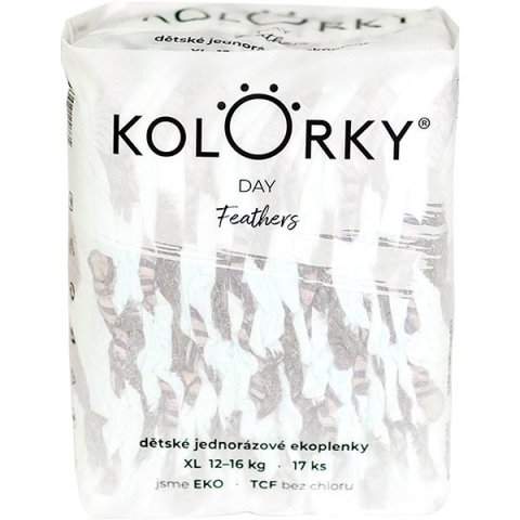 Eldobható pelenka - öko pelenka és hagyományos pelenka, méret XL, gyermek súlya 12 - 16 kg, 17 darab a csomagban, pelenkakiütés elleni védelem, rugalmas szalag, parfümmentes és klórmentes, Kolorky Day sorozat Biztosítsd gyermekednek a szárazság érzését. A hagyományos típusú Kolorky pelenka a remek Kolorky Day sorozatból egyáltalán nem fogja zavarni a kisbabát és megadja neki a szükséges kényelmet. A felkín