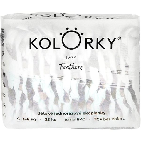 Eldobható pelenka - öko pelenka és hagyományos pelenka, méret S, gyermek súlya 3 - 6 kg, 25 darab a csomagban, pelenkakiütés elleni védelem, rugalmas szalag, parfümmentes és klórmentes, Kolorky Day sorozat Gyermekednek száraznak kell éreznie magát, hogy elégedett legyen. A hagyományos dizájnú Kolorky pelenka az elsőrangú Kolorky Day sorozatból nem fogja korlátozni a kisbabát és biztosítja neki a szükség