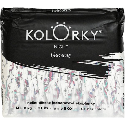 Eldobható pelenka - öko pelenka, hagyományos pelenka és éjszakai, méret M, gyermek súlya 5 - 8 kg, 21 darab a csomagban, nedvességjelző, szagsemlegesítő, pelenkakiütés elleni védelem, rugalmas szalag, extra légáteresztő, parfümmentes és klórmentes Hogy a gyermeked elégedett legyen, szüksége van rá, hogy száraznak érezze magát. A hagyományos fajtájú Kolorky eldobható pelenka nem fogja korlátozni a kisbabát és biztosítja neki a szükséges komforto