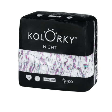 A KOLORKY NIGHT pelenkák gondoskodnak a kisbabád nyugodt éjszakájáról, egészségéről, de a minket körülvevő természetről is, mindezt csodálatosan szép dizájnnal. A magasabb nedvszívó rétegnek köszönhetően biztos lehetsz abban, hogy a kisbabád popsija egész éjjel száraz marad. A nedvességjelző pontosan jelzi, mikor kell a baba pelenkáját kicserélni. A természetes és megújuló anyagok, amelyekből ezek a pelenkák készülnek, védik és óvják a babák finom b