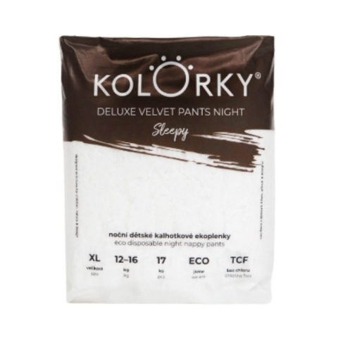 A KOLORKY DELUXE VELVET PANTS NIGHT az új éjszakai bugyis pelenkák, amelyek a sikeres DELUXE VELVET PANTS utódai, és a kicsik nyugodt éjszakai pihenését szolgálják. Az elasztikus derékpántnak köszönhetően a bugyis pelenkák könnyen felhúzhatók. Bársonyos felülettel, nedvességjelzővel és új generációs nedvszívó maggal rendelkeznek, amely megnövelt abszorpciós réteggel bír, így a pelenka vékony, gyorsan elvezeti a nedvességet, és szárazon tartja a baba bőrét
