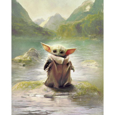 1 kép Komar nemszőtt fotótapéta Star Wars The Mandalorian Grogu Landscape zöld