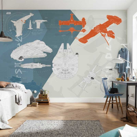 Star Wars Technical Plan fotótapéta - Csillagok háborúja űrhajók fali poszter A kép 368 cm széles és 254 cm magas. ( 8 részes, egyenként 92 x 127 cm-es darabból áll ) A felrakáshoz szükséges ragasztóval együtt szállítjuk.