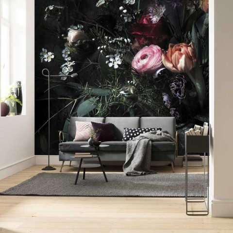 Still Life fotótapéta - Fekete alapon romantikus rózsás tapéta A kép 368 cm széles és 254 cm magas. ( 8 részes, egyenként 92 x 127 cm-es darabból áll ) A felrakáshoz szükséges ragasztóval együtt szállítjuk.