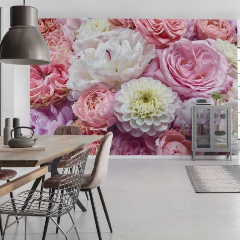 Vibrant Spring fotótapéta - Trendi rózsamintás tapéta 368 cm széles és 254 cm magas. ( 8 részes, egyenként 92 x 127 cm-es darabból áll ) A felrakáshoz szükséges ragasztóval együtt szállítjuk.