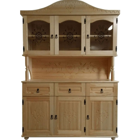 Janó faragott fenyő tálalószekrény: Elegáns tárolás és dekoráció a nappaliba 🏡 Ez a gyönyörű Janó tálalószekrény tömör fenyőfából készült, kézzel faragott növényi mintákkal díszítve.  Egyedi darab, ami stílust és eleganciát visz otthonodba.  Ideális...