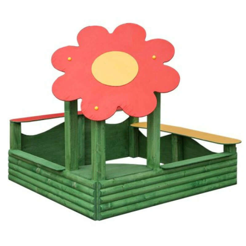 Virágos Fenyő Homokozó: Vidám homokozás a kicsiknek 🌻 Ez a bájos, virág alakú tetővel ellátott fenyő homokozó tökéletes helyszín a gyermekek számára a szabadtéri játékhoz. Strapabíró, tömör fenyőfából készült, így hosszú éveken át biztosítja a szórak...