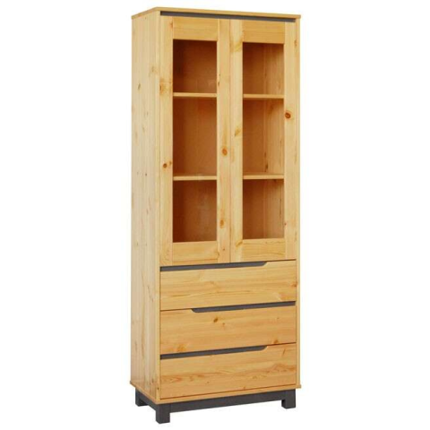 1 kép Komforttéka Lexa fenyő Szekrény 3 fiókos üveges Wenge
