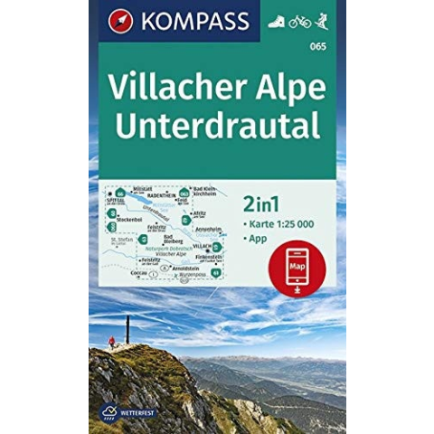 1 kép Kompass 065. Villacher Alpe turista térkép, Unterdrautal turista térkép Kompass 1:25 000