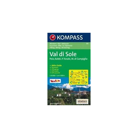 119. Val di Sole, 1:35 000, D/I/E turista térkép Kompass turistatérkép, kerékpáros térkép