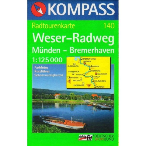 1 kép Kompass 140. Weser-Radweg kerékpáros térkép Kompass 1:125 000