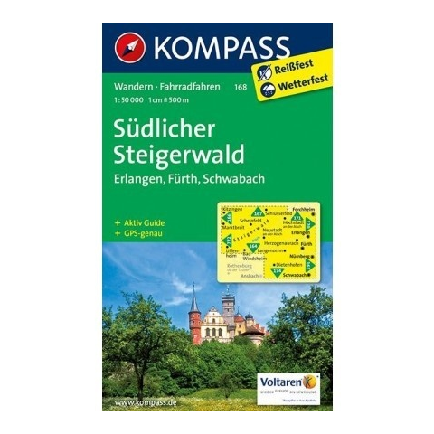 1 kép Kompass 168. Steigerwald, Südlicher, Erlangen, Fürth, Schwabach turista térkép Kompass