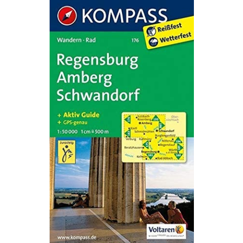 1 kép Kompass 176. Regensburg, Amberg, Schwandorf turista térkép Kompass