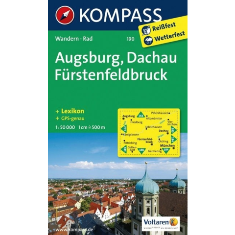 1 kép Kompass 190. Augsburg, Dachau, Fürstenfeldbruck turista térkép Kompass