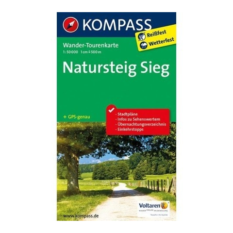 1 kép Kompass 2501. Natursteig Sieg turista térkép wandertourenkarten