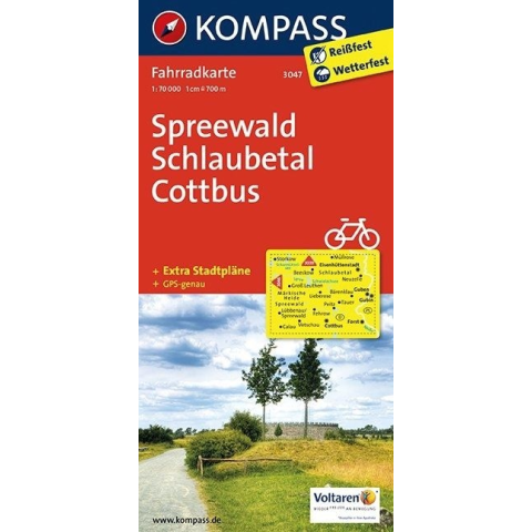 1 kép Kompass 3047. Spreewald, Schlaubetal, Cottbus kerékpáros térkép 1:70 000 Fahrradkarten