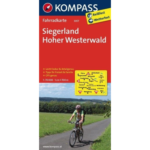 1 kép Kompass 3057. Siegerland, Hoher Westerwald kerékpáros térkép 1:70 000 Fahrradkarten